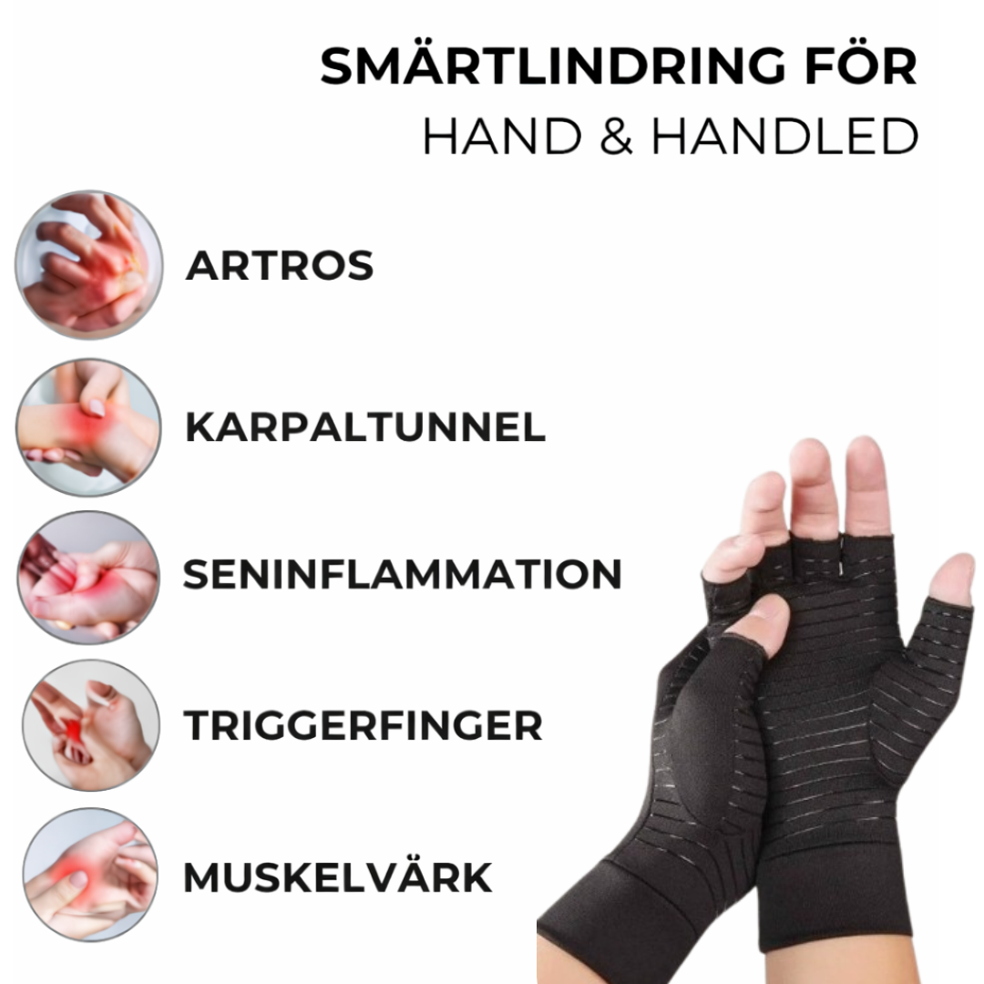 OrthoFlex är framtagen för att ge stöd och lindring vid flera vanliga besvär i händerna, såsom artros, karpaltunnelsyndrom, tendinit, triggerfinger och generell stelhet.